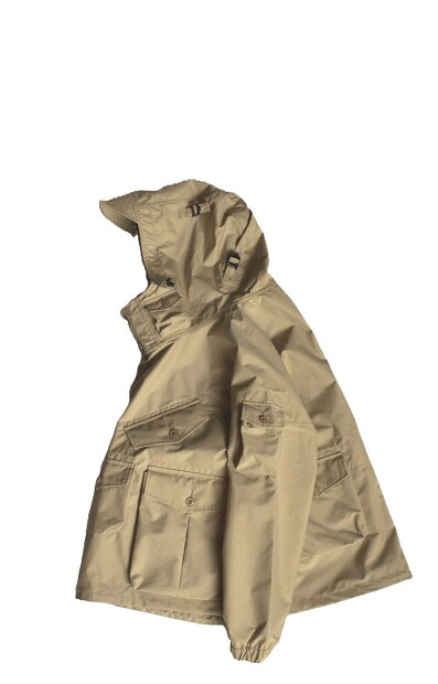 こちらはMODMNT MIL SMOCK SHORTになります。生地には高い撥水性、透湿性を持った3レイヤー高機能生地を使用。デザインは英軍ロイヤルネイビーヴェンタイルスモックをベースに着丈を少し短くし、ポケットデザインをアレンジ。またフード後ろには、同じく英軍ロイヤルネイビーのFOUL WEATHER JACKETのようなクロス状のアジャスターを配す事によりフード着用時のフィット感を高めると共にデザインアクセントにし、背面にはジップを配し着脱のしやすさを向上。ミリタリー要素がありながらも都会的な洗練された雰囲気に仕上げたMODMNTが提案する高機能スモックになります。是非お試しください。