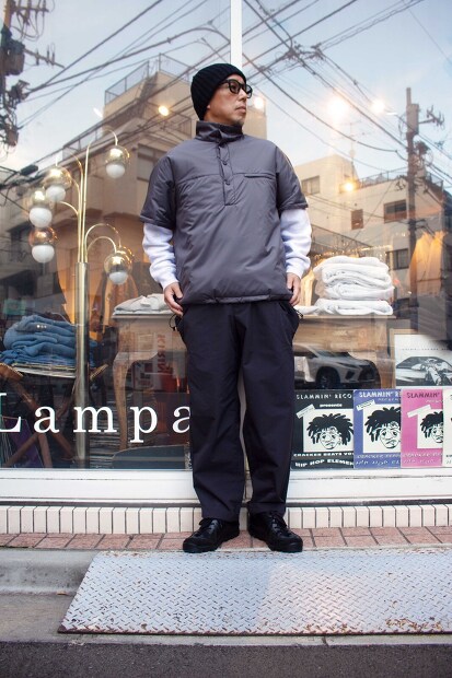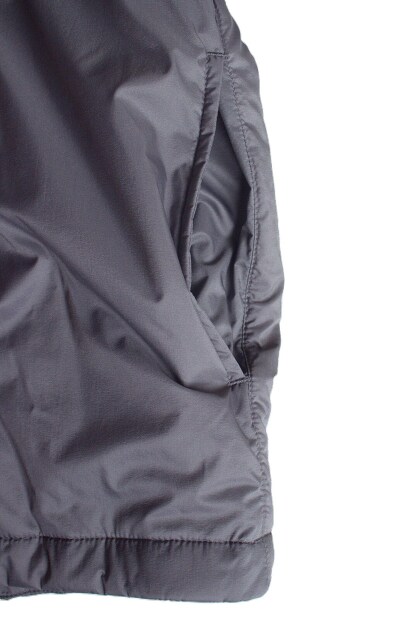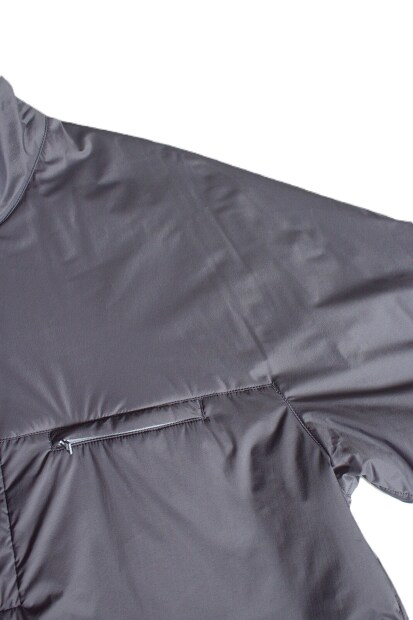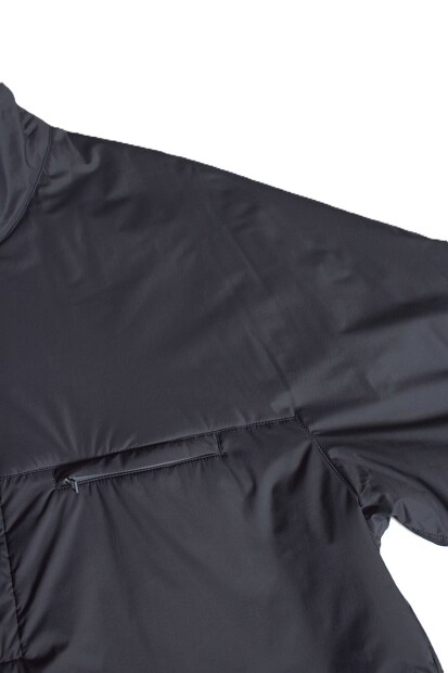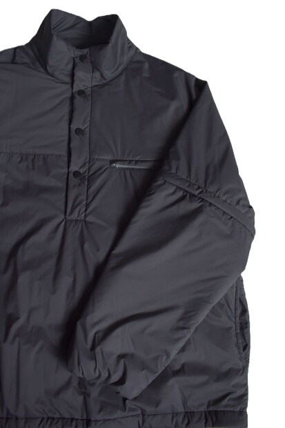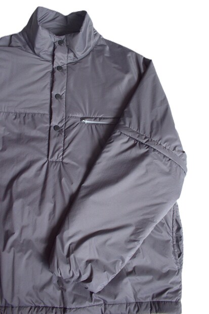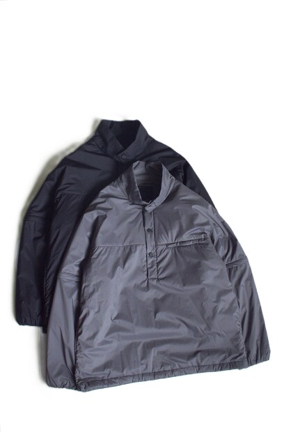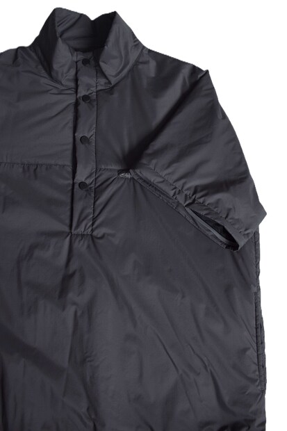 こちらはMEANSWHILE ULTRALITE PADDING SH MW-SH24204になります。生地にはプレコンシューマリサイクルナイロンを使用した超軽量マイクロリップストップナイロンを使用。軽量で防風性があり、中綿を入れる事により防寒性を高めたものになります。デザインはアウトドアジャケットに見られるハーフスナップの仕様に、左胸にジップポケットを装備、裾にはアジャスターを配しシルエットの調整が可能。またハンマースリーブのような独特なスリーブデザインを採用しナチュラルな肩のラインを演出。更に袖はジップにより半袖にもなり様々な気温、スタイルに対応可能と、機能的でありながらも、ファッションとしても成立するMEANSWHILEらしいジャケットに仕上がっております。是非お試しください。
