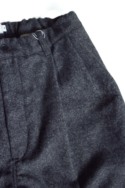 こちらはSTILL BY HAND シルクネップツイードパンツ PT02254になります。生地にはウール、シルク、ナイロン、ポリエステル等を使用したシルクネップツイードを使用。ネップ感のある暖かみのあるツイード特有の生地感ながらも、化繊が入ってるので軽量で手洗いでの洗濯が可能な生地になります。デザインは2タックの腰回りから裾に向かってテーパードがかったシルエットを採用。洗練された見え方の中にも、あえて綺麗になり過ぎない様に計算されたSTILL BY HANDらしいデイリーなパンツに仕上がっております。是非お試しください。