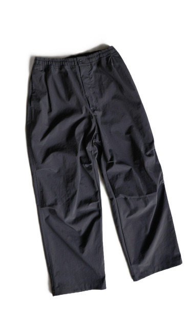 こちらはSTILL BY HAND タスランナイロンニータックパンツ PT06254になります。生地にはタスランナイロンを使用。軽量で適度にハリ感があり化繊ながらもナチュラルな見え方が特徴の生地になります。デザインは全体的にゆったりとし裾に向かって軽くテーパードしたシルエットを採用。またウエストはイージー仕様に膝にはニータックを配しアクセントに。ミリタリーのカーゴパンツのカーゴポケット無しといった感じの、カジュアル感がありながらも適度に洗練された雰囲気を持った洗練されたパンツに仕上がっております。是非お試しください。