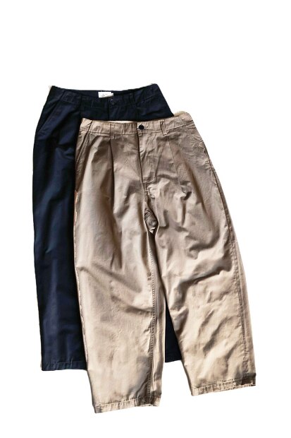 こちらはSTILL BY HAND セルビッチチノテーパードタックパンツ PT02261になります。生地にはブランドオリジナルのセルビッチチノを使用。やや無骨ながらも綺麗な糸を使用する事により、ラフ過ぎず上品過ぎない絶妙な仕上がりのチノとなっております。デザインはやや深めに入ったタックに、ヒップ、腿回りはゆったりとし裾に向かってテーパードしたシルエットを採用。また股下は若干短めに設定し、太めながらもスッキリとした雰囲気に。STILL BY HANDらしいカジュアル感がありながらも適度に洗練されたチノパンを是非お試しください。