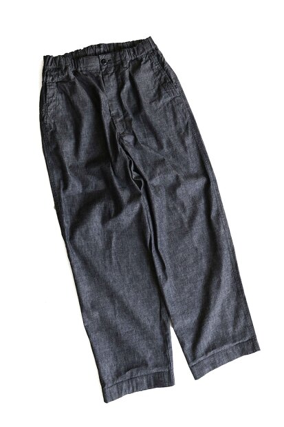 こちらはBRENA COQ PANTS 60S DEADSTOCK VINTAGE FRENCH CHAMBRAYになります。生地には60年代デッドストックのフレンチシャンブレー生地を使用。いわゆるアメリカのワーク的なシャンブレーとは違う、上品で奥深い表情のある生地になります。デザインはヨーロッパのコックパンツをベースにし、シルエットはヒップ周りはゆったりと裾にむかって軽くテーパード。またウエウストはイージー仕様にしリラックス感を演出。希少なデッドストック生地を使用したBRENAならではの大人なカジュアルパンツを是非お試し下さい。